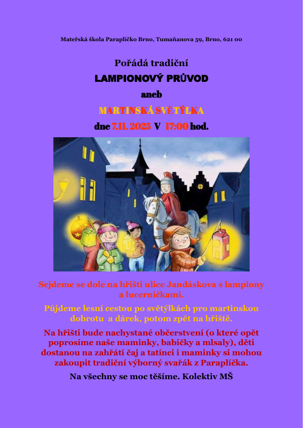 LAMPIONOVÝ PRŮVOD aneb MARTINSKÁ SVĚTÝLKA