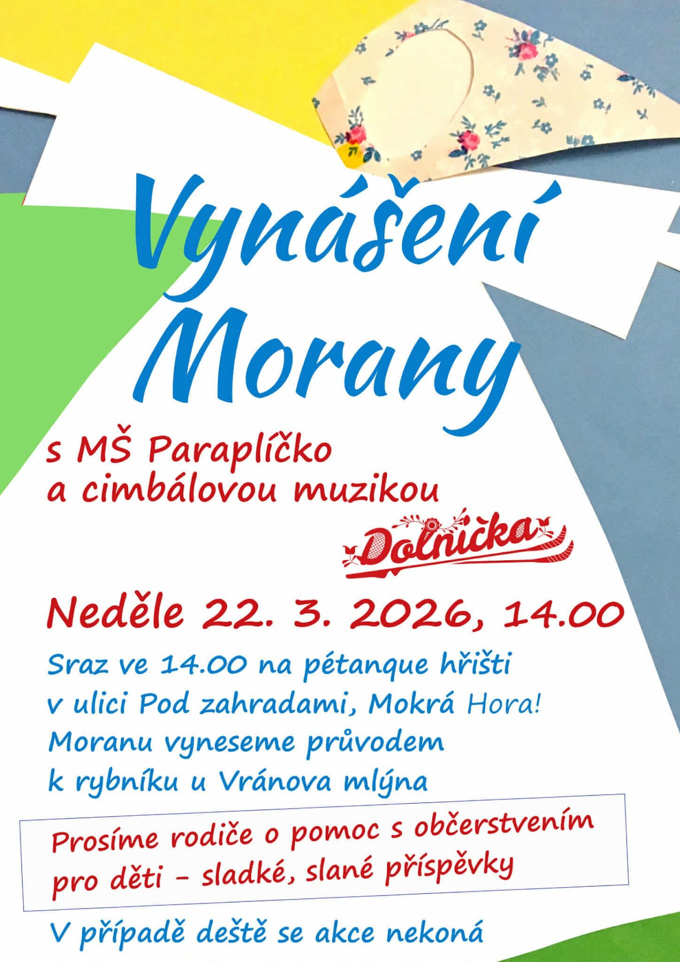 Již tuto neděli vynášení Morany od 14:00.
